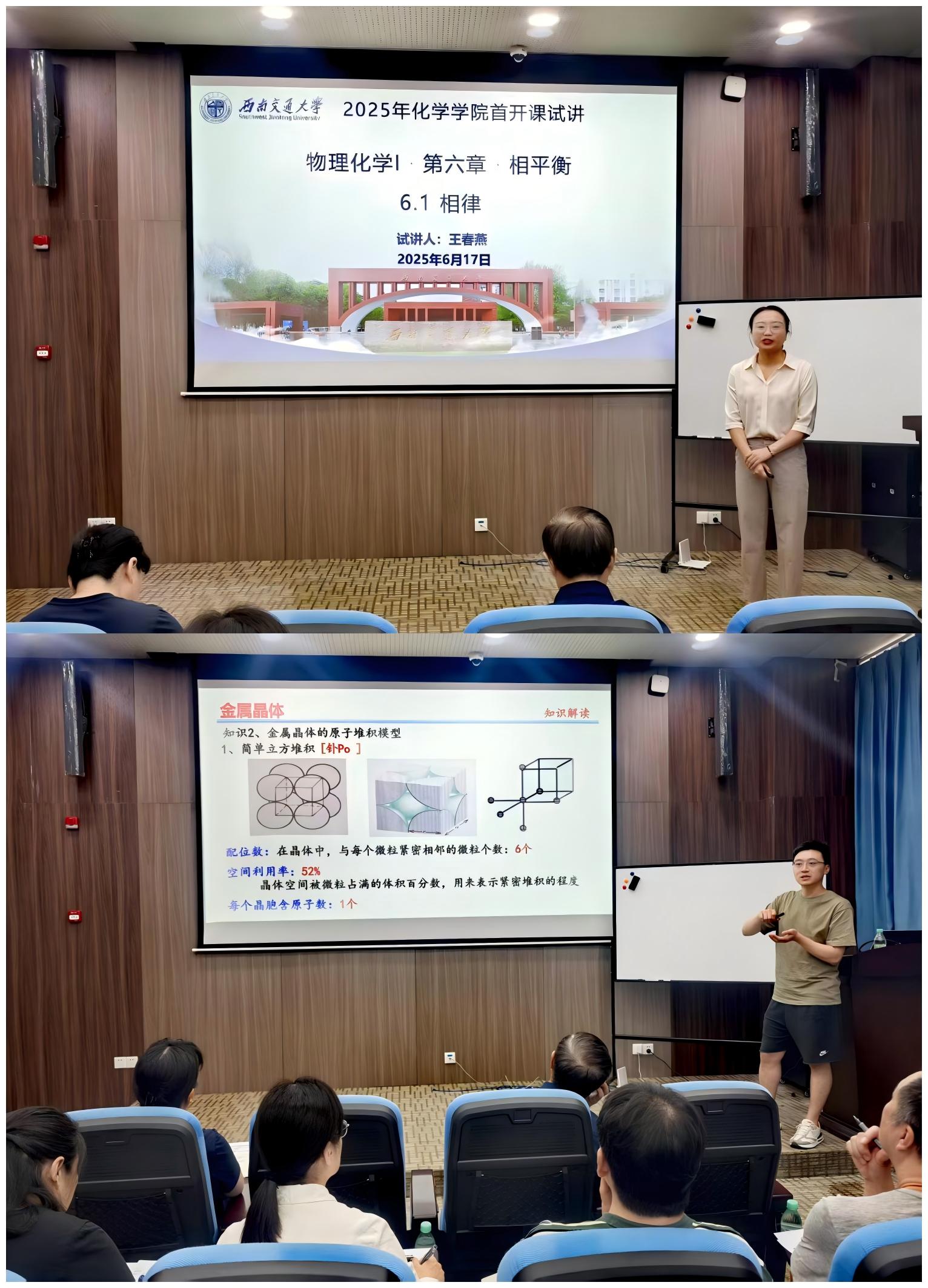 为全面落实立德树人根本任务,加强教师队伍建设,根据学校首开课新任教师的工作要求,化学学院于2025年6月17日上午在学院C103会议室组织开展了2025年春季学期首开课教师试讲活动。本次活动邀请了学院教学副院长王雅雯教授、教学督导组组长管棣教授以及教学经验丰富的资深教师吕军教授、姜曼副教授、蒋亚副教授、郝静讲师作专家评委,考核首次开课教师的基本授课能力。