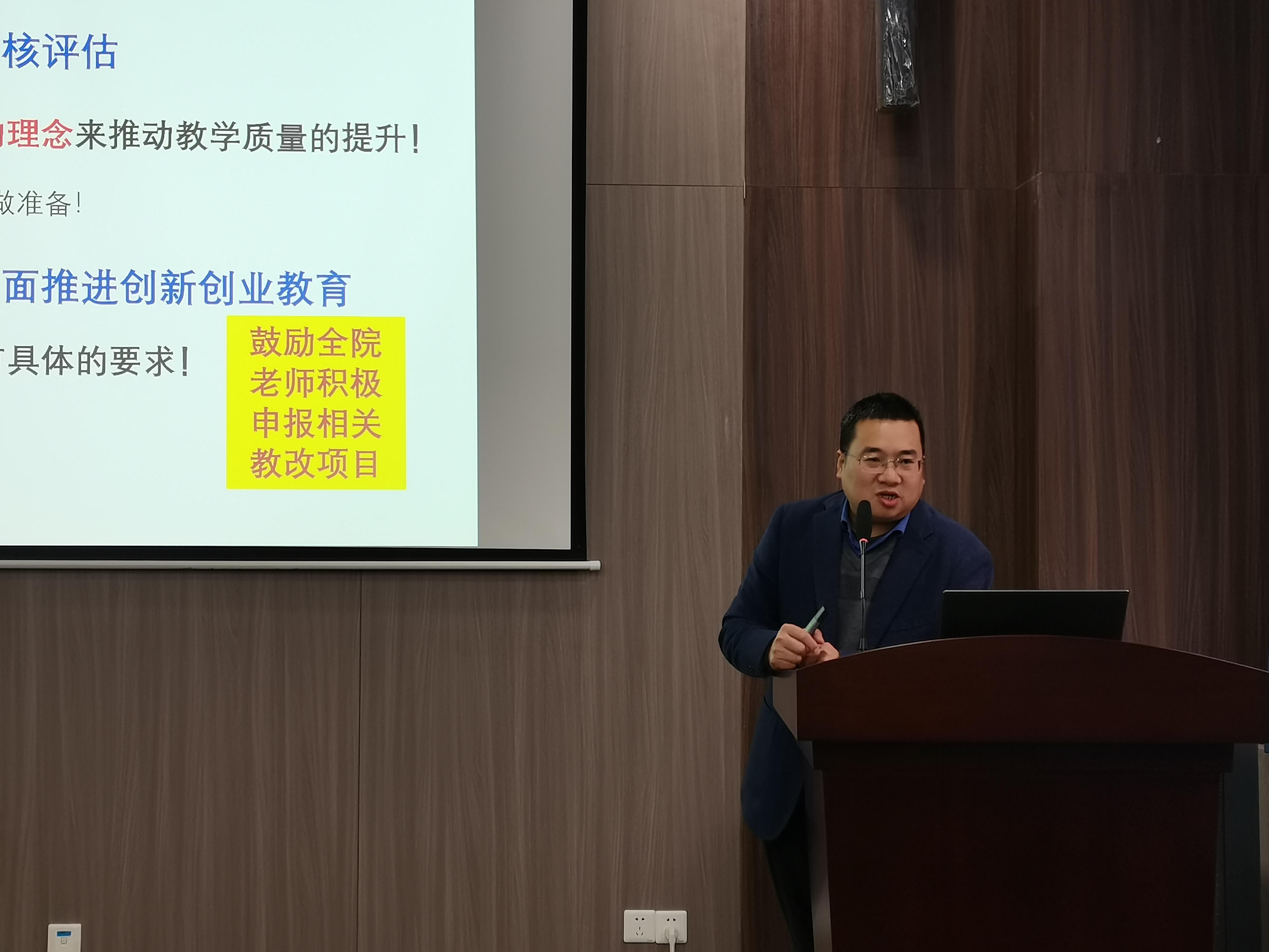 王勇教授结合学院实际首先对本科生教学工作进行了详细部署,包括:本科教育大会、创新创业教育、高分子专业专业论证、学校本科培养方案的修订、本科毕业论文/设计、教材建设等9个方面。随后,王教授对研究生招生提出要求,号召导师要注重多宣传。最后,王教授强调,研究生导师是研究生的第一责任人,培养环节中要多关心关爱学生,要严把毕业论文关。