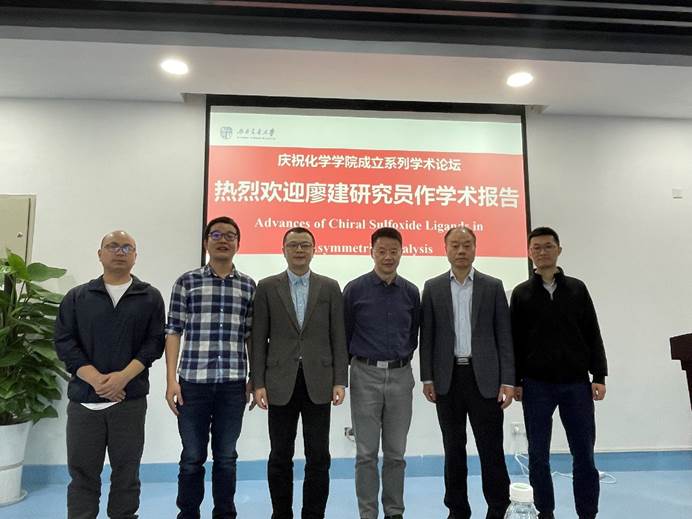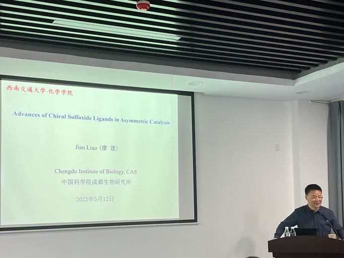 5月12日上午,中国科学院成都生物所廖建研究员应彭羽教授邀请来校交流,并以“Advances of Chiral Sulfoxide Ligands in Asymmetric Catalysis”为题做了一场精彩的学术报告。此次报告会在九里校区工业中心C座203会议室举行,由色情动漫