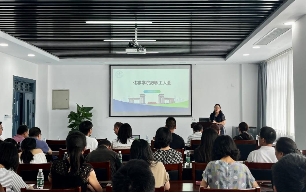 于九里校区工业中心C座C203会议室召开全院大会。学院党委书记李国芳、院长周祚万、党委副书记张春燕、副院长王勇、副院长崔树勋和全体教职工参加会议,会议由学院党委书记李国芳主持。