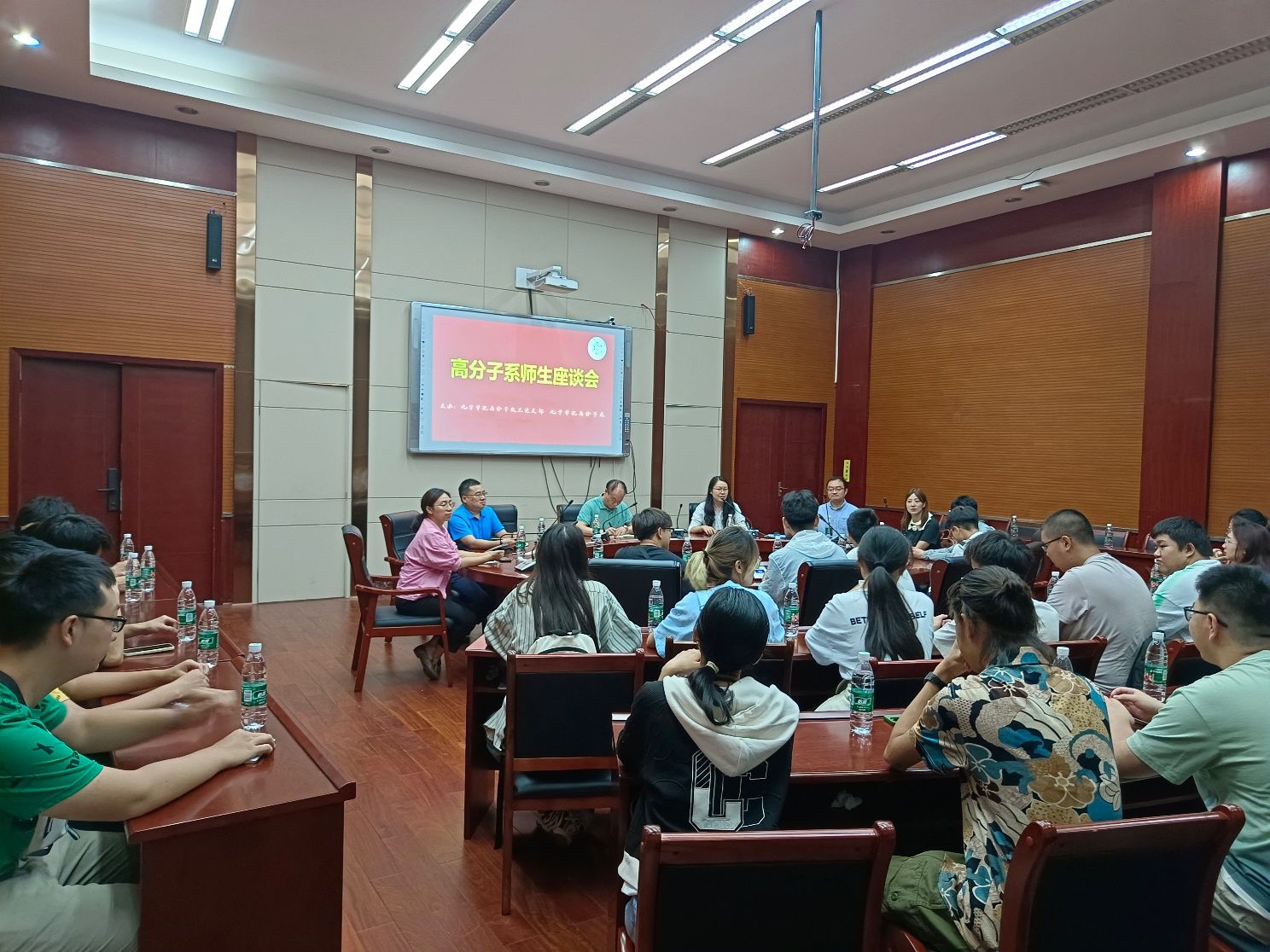 活动当天,高分子系实验室的老师们早早地做好了准备,实验室内的各种先进设备摆放整齐,静待学生们的到来。随着参与活动的学生们陆续到来,由徐晓玲老师和孙得翔老师带领53位高分子材料与工程专业2023级本科生参观实验室,并对实验设备和开展的相关实验进行了介绍,使同学们提前了解了本专业的科研设备以及相关的研究方向,提高同学们对科研的兴趣和对专业的热爱。随后,邀请院领导周祚万院长、王勇副院长以及高分子系教师代表杨静晖副教授、徐晓玲副教授、高霞副研究员、孙得翔老师和董秀老师与同学们进行问答式座谈,座谈会现场气氛热烈,同学们围绕课程学习、科创竞赛、科研环境等方面,结合自身在学习、生活中的所思所感,踊跃发言、积极讨论。通过融洽地沟通和交流,为同学们答疑解惑,使同学们对大学生活不再迷茫,将饱满的热情投入到日常生活和学习中,不断进步。