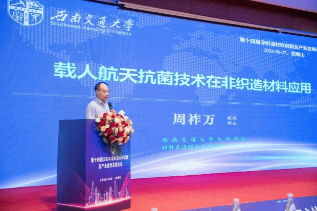 院长周祚万教授应邀以“载人航天抗菌技术在非织造材料应用”为题作大会报告,引起与会专家和企业界的广泛兴趣,数十家家行业企业表达合作意向。
