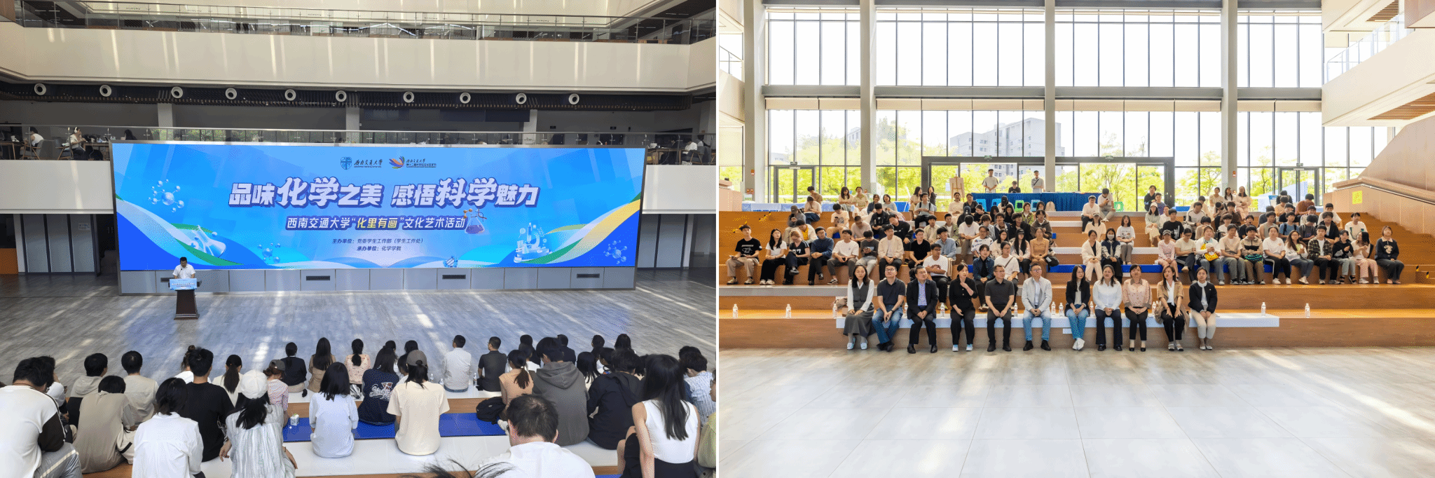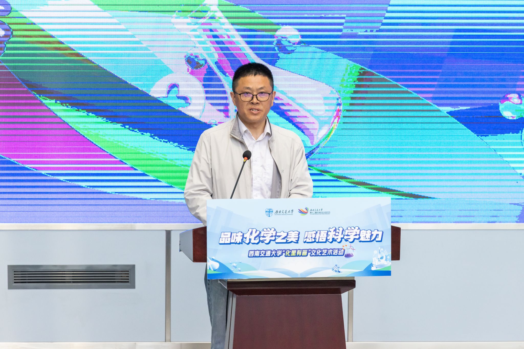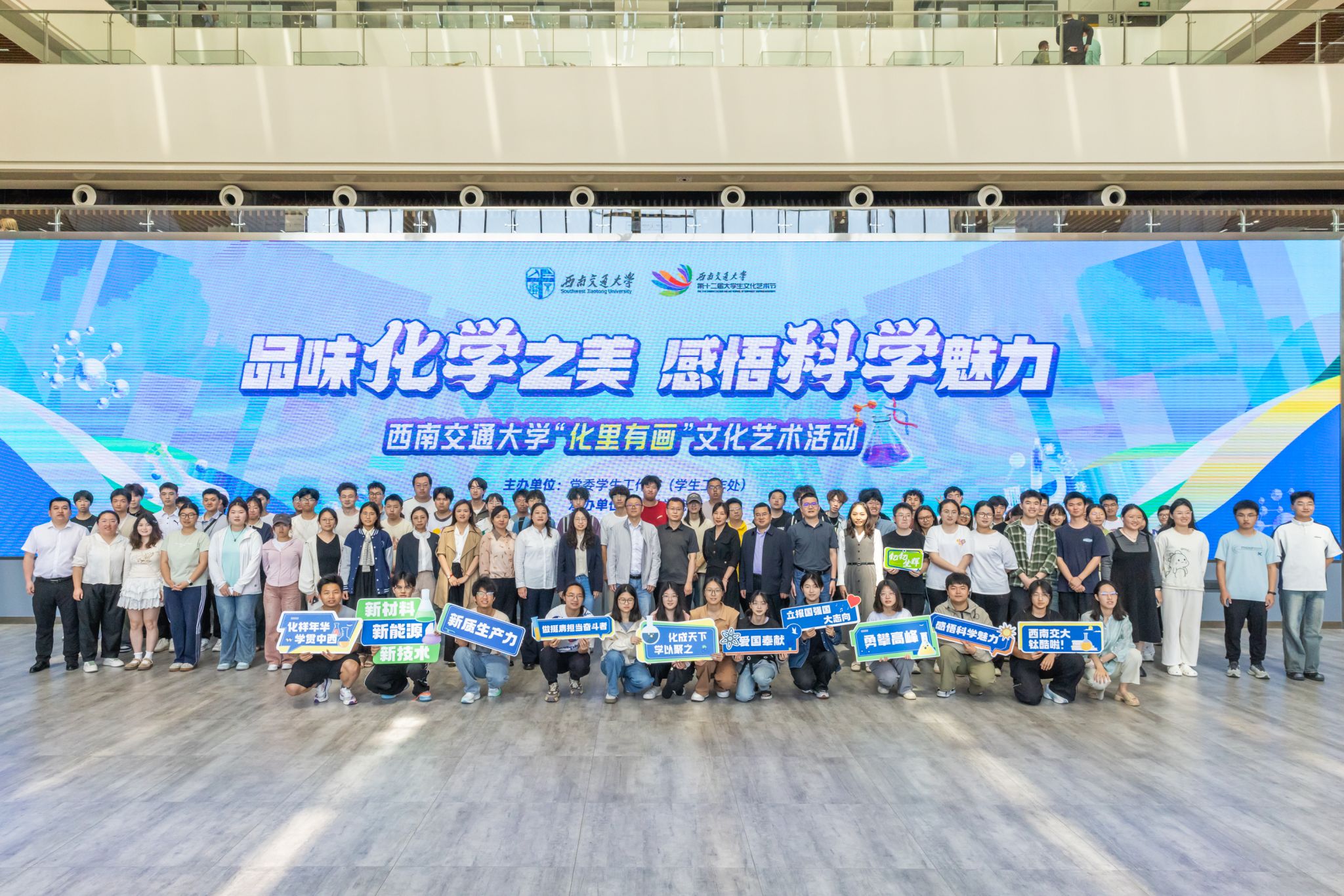 4月24日下午,色情动漫 “化里有画”文化艺术系列活动在犀浦校区三号教学楼举行,通过挖掘学科蕴含的美育价值与功能,引导交大师生感悟科学魅力。活动现场气氛热烈,党委学生工作部、校团委、教务处、国有资产与实验室管理处(分析测试中心)、色情动漫 等单位相关负责人以及300余名师生热情参与,共同体验这场充满科学精神与艺术气息的化学盛宴。该活动也是学校第十二届大学生艺术文化节系列活动之一。