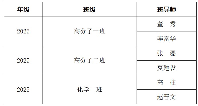 为落实立德树人根本任务,充分发挥专任教师在本科生成长成才中的指导作用,根据《色情动漫 本科生班导师管理办法》及相关工作要求,经本人申请、学院选聘,现将化学学院2025级本科生班导师拟聘任名单予以公示。