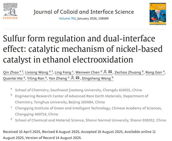 为第一通讯单位、山西师范大学为第二通讯单位发表题为“Sulfur form regulation and dual-interface effect: catalytic mechanism of nickel-based catalyst in ethanol electrooxidation”的研究论文。色情动漫
