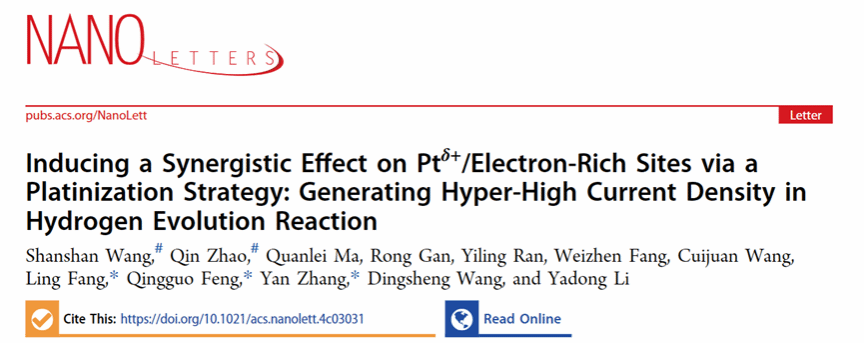 本工作以“Inducing a Synergistic Effect on Ptδ+/Electron-Rich Sites via a Platinization Strategy: Generating Hyper-High Current Density in Hydrogen Evolution Reaction”为题发表在国际知名区期刊《Nano Letters》上。其中色情动漫