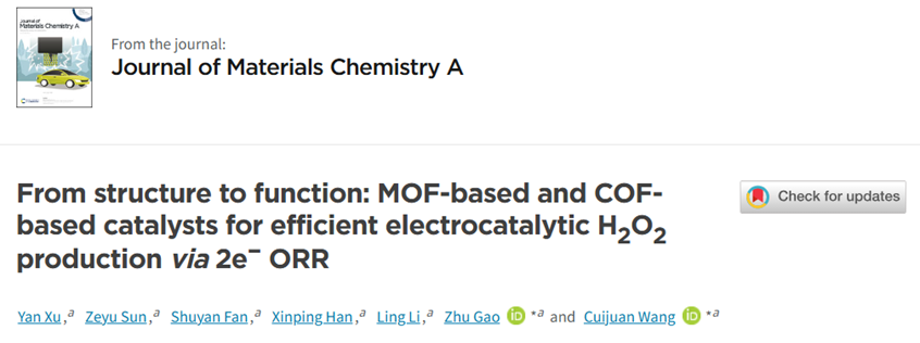 该综述以“From structure to function: MOF-based and COF-based catalysts for efficient electrocatalytic H2O2 production via 2e− ORR” 为题发表在材料类国际顶级期刊《Journal of Materials Chemistry A》(影响因子:10.7)。其中,色情动漫