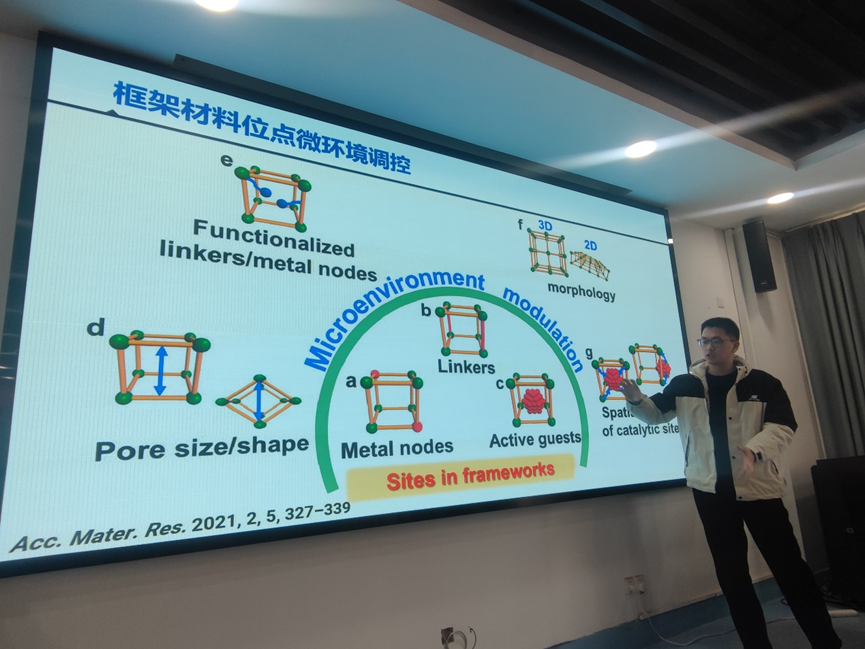 本期学术沙龙的分享嘉宾是学院助理教授高柱老师与张磊老师。高柱老师一直从事多孔有机-无机材料(MOF/COF)的可控合成、功能化和光催化应用研究,在此类材料微观尺度和宏观尺度上的可控合成策略和方法以及分子调控的影响和内在机制等方面积累了一定的研究经验。在Angew. Chem. Int. Ed.,Chin. J. Chem.,Sci. China Chem.等国内外刊物上发表了SCI论文7篇。