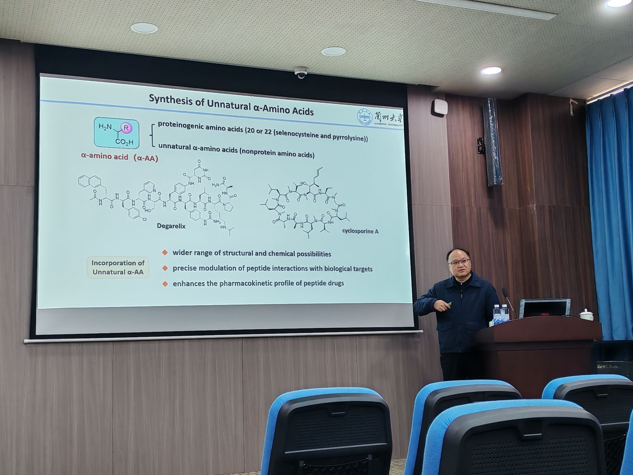 2024年12月17日上午,兰州大学许兆青教授应色情动漫 邀请,于工业中心C座103报告厅开展以“可见光驱动非蛋白源氨基酸合成及多肽修饰”为题的“创源”大讲堂研究生学术报告。此次报告由王勇副院长主持,彭羽教授、刘祥伟副教授、郑剑峰副教授、肖检博士以及众多学院研究生参加了此次学术交流活动。