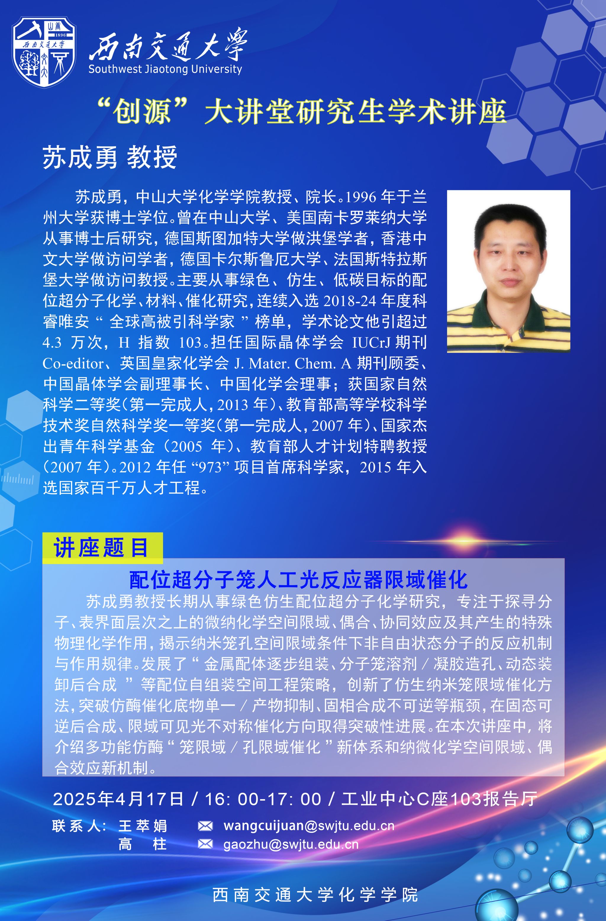 色情动漫 “创源”大讲堂学术讲座:《配位超分子笼人工光反应器限域催化》