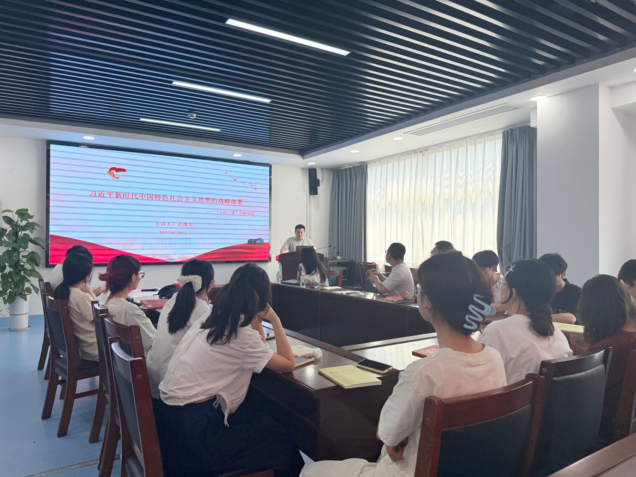2023 级研究生党支部本学期精心打造 “精研理论,砥砺初心” 理论学习读书班,通过 8 期系统化学习筑牢研究生党员思想根基。6 月 16 日,读书班举行结班专题学习,学院团委书记孔维东担任主讲,研究生辅导员闫赛到场指导。