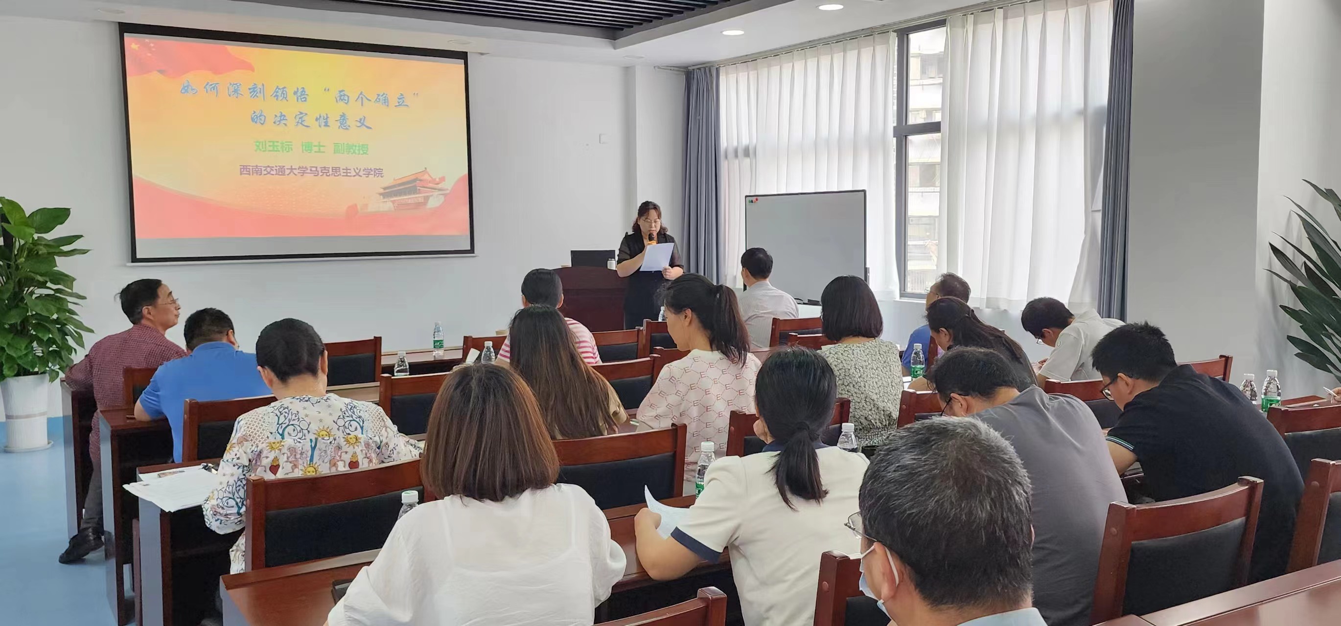 刘玉标以“如何深刻领悟“两个确立”的决定性意义”为题,为全体参会的党员同志们带来了一场思想的“精神之旅”。刘教授以《中共中央关于党的百年奋斗重大成就和历史经验的决议》为指引,从中国共产党百年奋斗的光辉历史维度,深刻剖析了“两个确立”的丰富内涵和决定性意义。刘教授指出,科学把握“两个确立”是党的十八大以来最重要的政治成果和历史结论,是我们过去能够成功和未来继续成功的制胜密码。